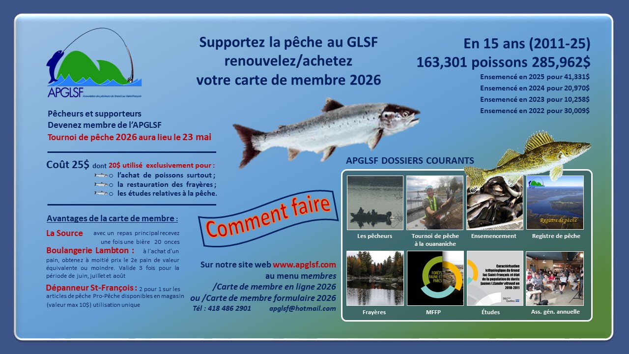 Dépanneur St-François : 2 pour 1 sur les articles de pêche Pro-Pêche disponibles en magasin (valeur maximale 10$), utilisation unique.